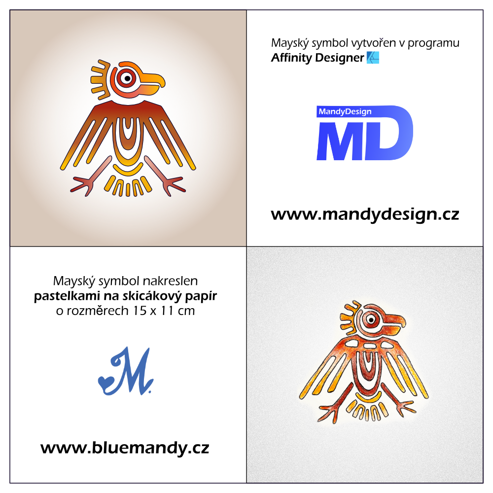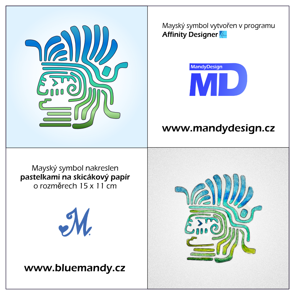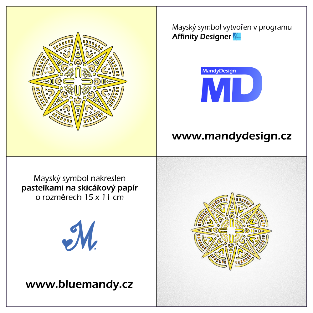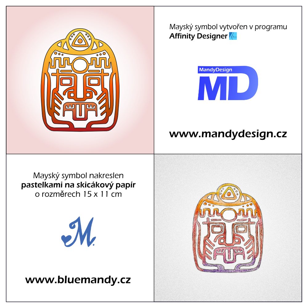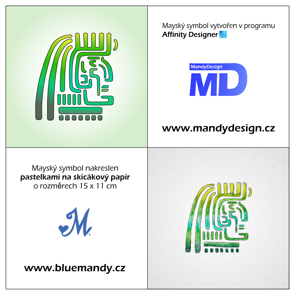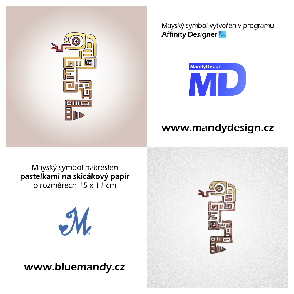 2026 - Grafické "kreslení" mayských symbolů versus kreslené pomocí pastelek a černého lineru. Aby byly symboly barevnější, použila jsem rozličné barvy.